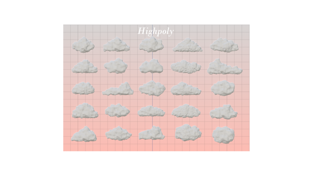 Cloud 21 ~ 4,496 Tris Cloud 22 ~ 6,960 Tris Cloud 23 ~ 5,048 Tris Cloud 24 ~ 10,272 Tris