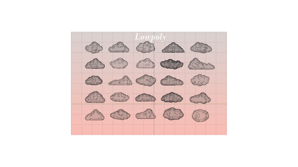 Cloud 22 ~ 1,580 Tris Cloud 23 ~ 1,172 Tris Cloud 24 ~ 2,316 Tris Cloud 25 ~ 916 Tris