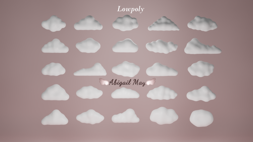 Cloud 1 ~ 5,720 Tris Cloud 2 ~ 6,264 Tris Cloud 3 ~ 6,024 Tris Cloud 4 ~ 16,704 Tris